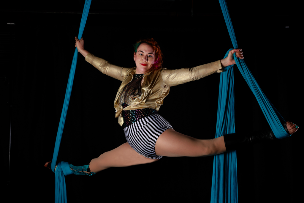 After relocating to Orlando, Elle began training at Orlando Aerial Arts (OAA), where she is now a coach and company member of Suspended Artistry, OAA’s community performance troupe. She is the founder of Elevate With Elle, a body-positive cirque fitness and aerial coaching program. Most recently, she’s begun training flow arts and specialty apparatuses — looking forward to reaching ever-new heights.